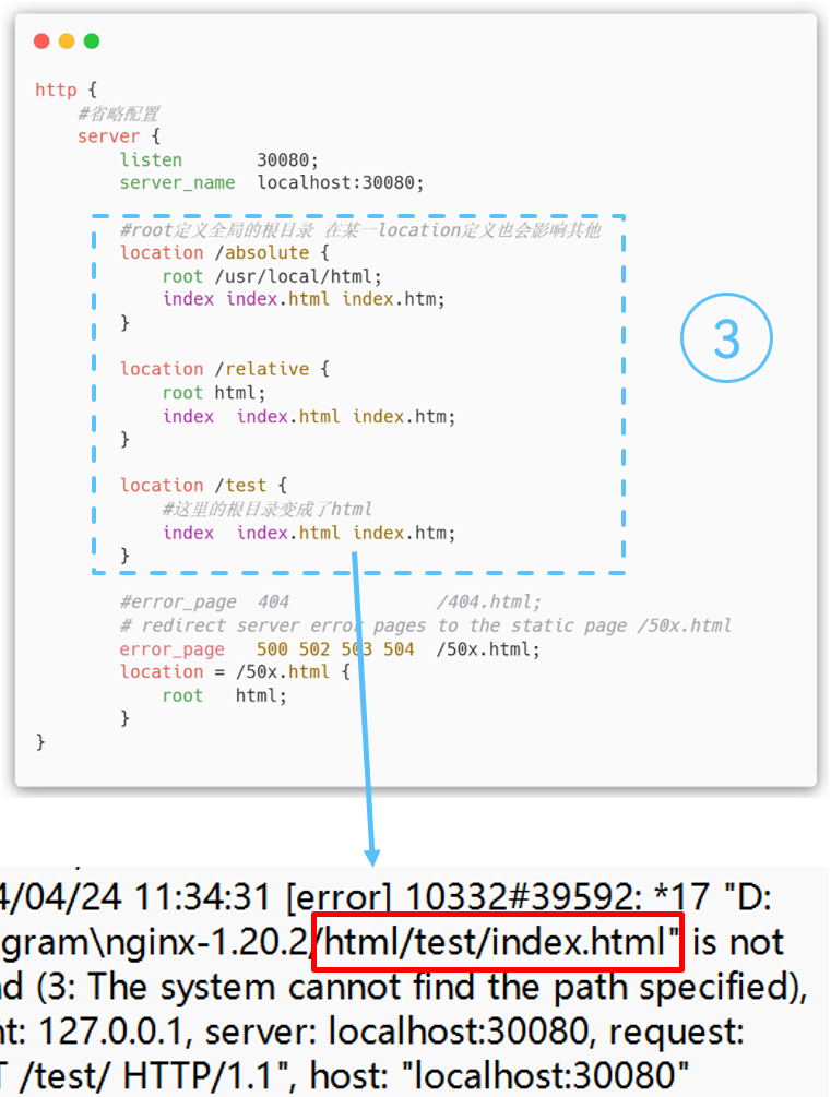 root被用来统一查找文件时的根目录,路径映射规则简单直观。它可以在http、server、location中定义,可单独使用。路径映射的规则可以直接参照linux命令行。