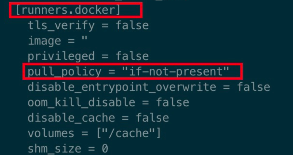 同时修改 gitlab-runner 对应的的配置文件 config.toml,补充 pull_policy 配置。