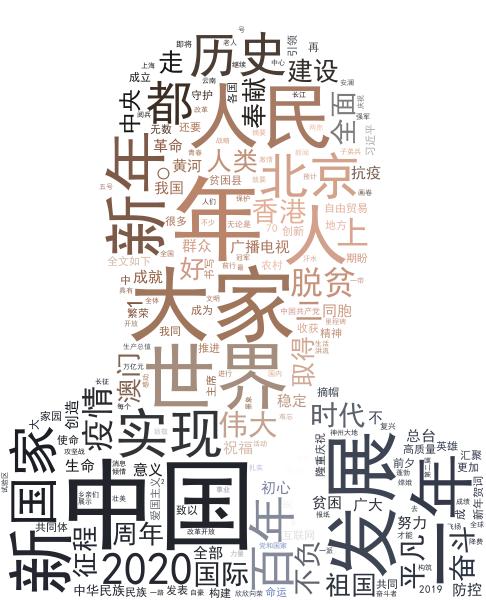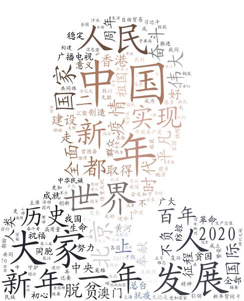 wordCounts = textSolve() ShowCloud('xijinping.jpg', 'C:/Windows/Fonts/SimHei.ttf', 'name.jpg', wordCounts)