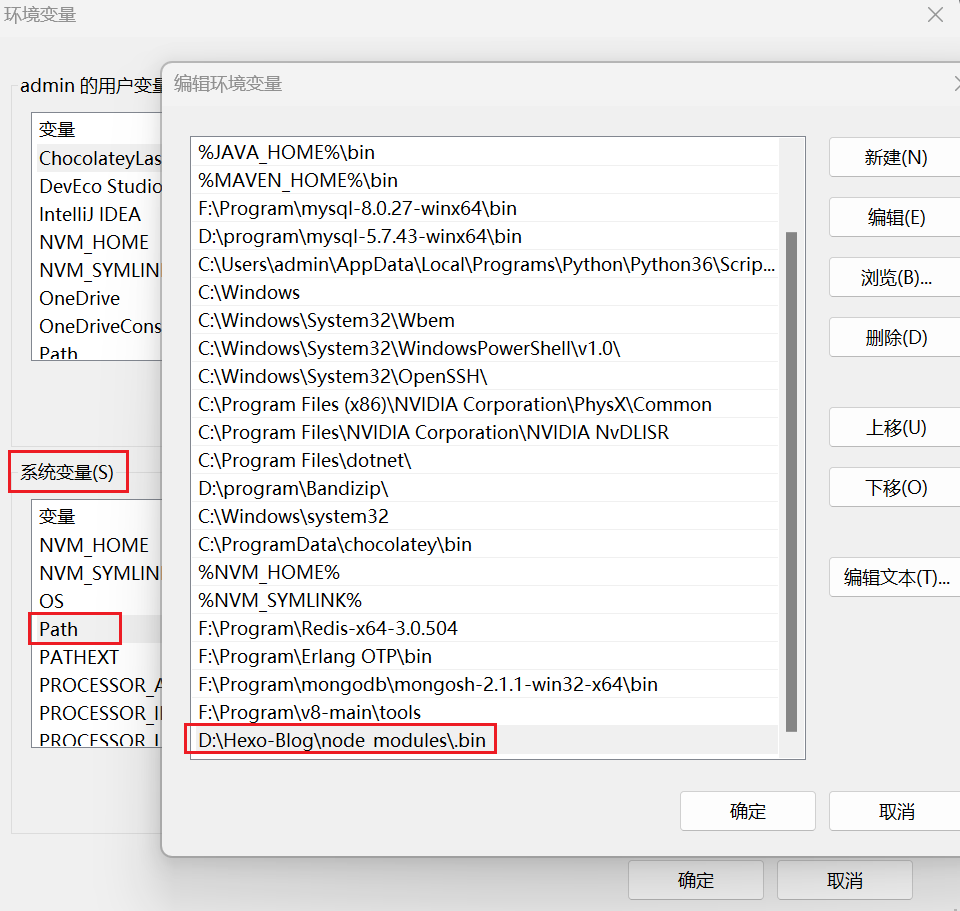 一段时间没有更新hexo博客,使用hexo的命令行时警告没有改命令,由于在几个月前配置过新电脑的环境并验证,所以可以排除是原来hexo博客迁移的问题,查找教程后,将博客文件目录下的 /node_modules/.bin 文件夹加入 环境变量->系统变量->path 中即可解决。
